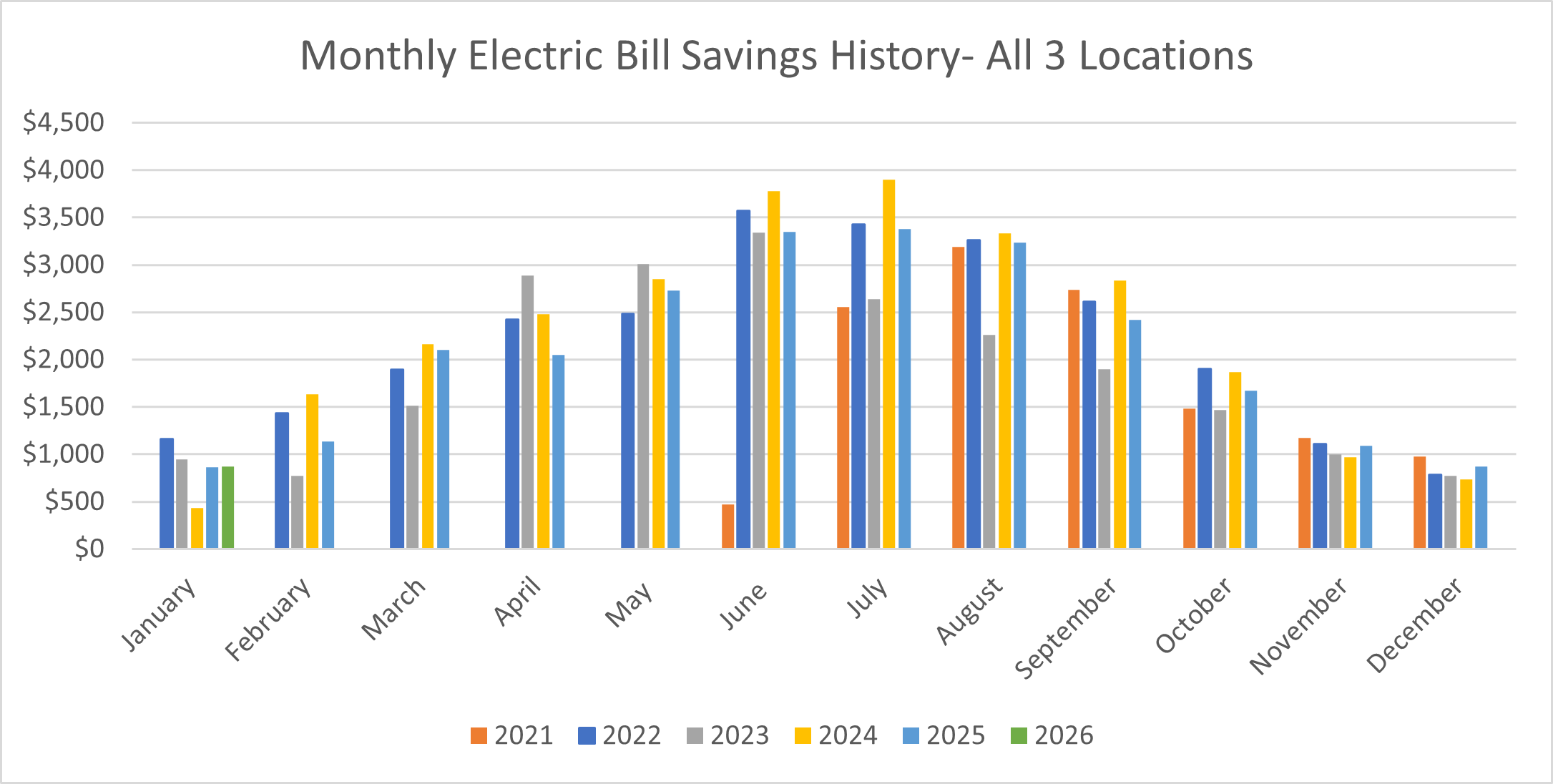The latest electric bill savings from solar panels on all city facilities can be found here. [upd. 02/26]